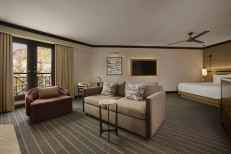 A total of 16 Park Fireside Suites are available. Although their configuration changes with location, their approximate size of these Beaver Creek accommodations is 600 square feet. All have a king-sized signature Hyatt Grand Bed® fitted with soft linens and down duvet piled atop a plush pillow top mattress, flat screen LCD TVs and a seating area offering a Queen sofa sleeper next to a gas fireplace. The Park Fireside Suites have varying views, most with balconies and the ability to connect to a Double / Double guest room.