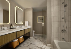 Experience refined luxury in a relaxing mountain getaway. Elegant Beaver Creek accommodations pamper you with sophisticated decor, a signature Hyatt Grand Bed fitted with soft linens and down duvet piled atop a plush pillow-top mattress. Double marble vanities in the bath and Le Labo signature products complement these relaxing retreats. The Standard View Queen/Queen room features two queen beds, and measures approximately 400 square feet. Rooms overlook the hotel grounds featuring beautiful landscaping and wooded areas.