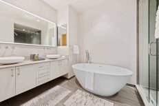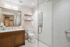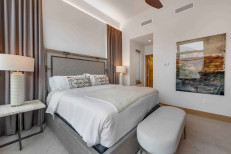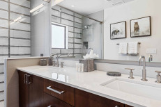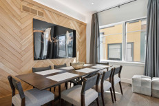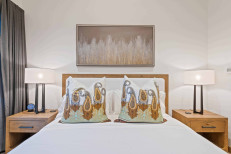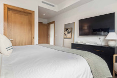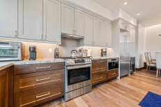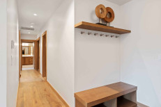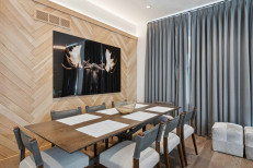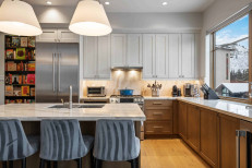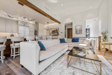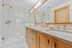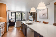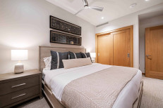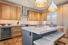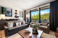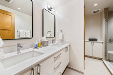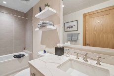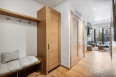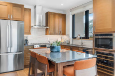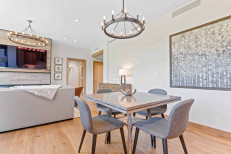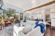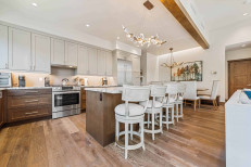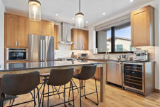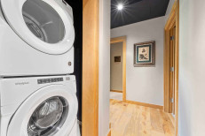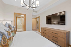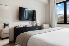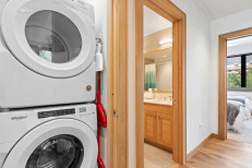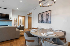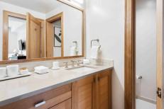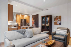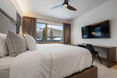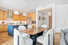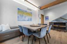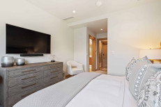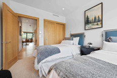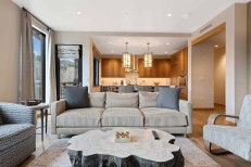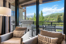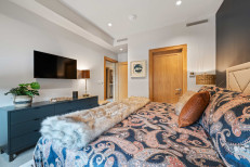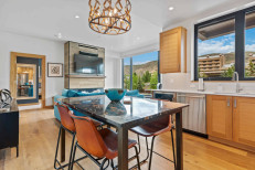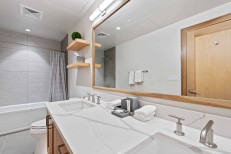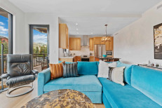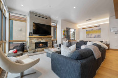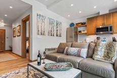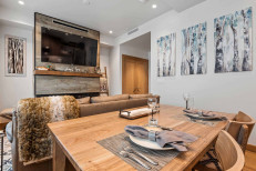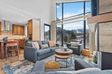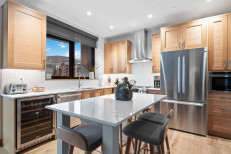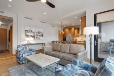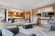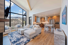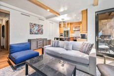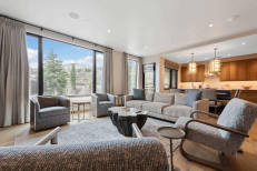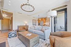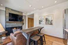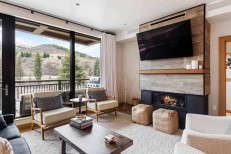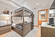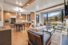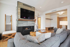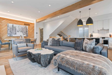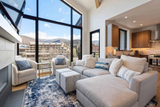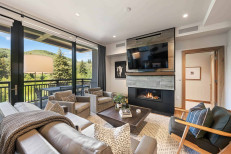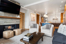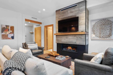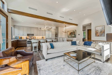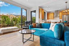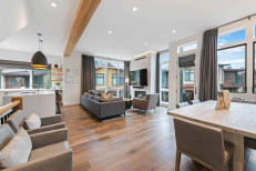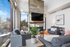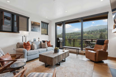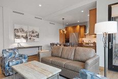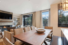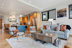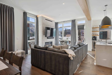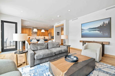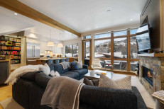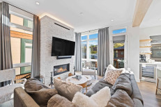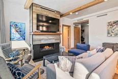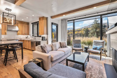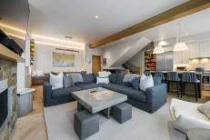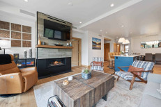 This magnificent, single-level residence, finished in sophisticated neutrals, is a short walk from The Westin Riverfront Express Gondola and offers a great room with a steel-clad gas fireplace, sofa and flatscreen TV; a gourmet kitchen with Wolf and Bosch premium appliances (including a wine refrigerator); plus a marble slab eat-in island for six. Additional features include two guest suites, each has an attached, spa-inspired bathroom and flatscreen TV (primary has a king size bed, secondary has a full-over-full bunk bed), hardwood flooring, designer lighting, a washer/dryer, and underground parking for one vehicle. More...