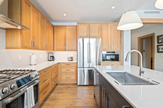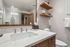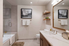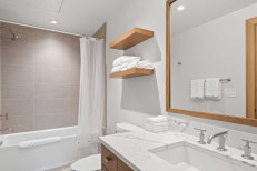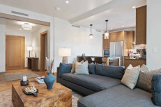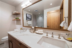 This newly-constructed, exceptionally spacious (sleeps 9), Platinum three-bedroom is outfitted in sophisticated neutrals with rustic touches throughout. Residing just a short walk from The Westin Riverfront Express Gondola, this residence offers a gas fireplace in the great room, Bosch appliances in the kitchen, and a splendid guest suite with an attached bathroom and king size bed. Additional features include a guestroom with a queen size bed, a bunkroom with two twin-over-twin beds and a trundle, air conditioning, designer lighting and furnishings, stackable washer/dryer and underground parking for one vehicle. More...