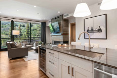 This brand new, ultra-chic, fourth floor, Platinum condominium is a short walk from The Westin Riverfront Express Gondola, and offers a great room with cathedral ceilings, a murphy bed and gas fireplace, an epicurean kitchen with premium stainless steel appliances, as well as a dining area for eight. Additional features include a bunkroom, hardwood flooring, custom storage cubbies, washer/dryer and underground parking for one vehicle. More...