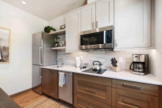 This quaint, mountain modern residence is a short walk from The Westin Riverfront Express Gondola and offers a great room with a gas fireplace, flatscreen TV and twin size sleeper sofa; a superb kitchen with stainless steel appliances as well as a convection microwave (no oven) and natural stone countertops; plus a dining table for two. Additional features include a guest bedroom outfitted with a queen size bed and flatscreen TV, a full bathroom, air conditioning, washer/dryer, a custom entryway with storage for all your outdoor gear, and garage parking for one vehicle. More...