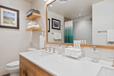 This new, multi-level, Platinum residence, finished in sophisticated neutrals, is a short walk from The Westin Riverfront Express Gondola and offers a great room with a gas fireplace, floor-to-ceiling windows and an epicurean kitchen with premium appliances, including a gas range and wine refrigerator; as well as a dining area for eight. Additional features include three guest suites, each with an attached, lavish bathroom (two have a king size bed, the third has a queen-over-queen bunk bed and trundle), a washer/dryer, air conditioning, custom ski/mud room, and one-car garage. More...