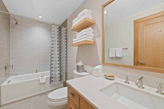 This newly-constructed, third floor, Platinum residence is a short walk from The Westin Riverfront Express Gondola and offers an open concept floorplan with a gas fireplace in the family room, Bosch appliances and slab countertops in the epicurean kitchen. The primary bedroom offers a king size bed and attached, spa-like bathroom. The second bedroom is outfitted with a king bed. Additional features include a bunk room with twin and full beds, air conditioning, washer/dryer, and underground parking for one vehicle. More...