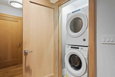 This handsome, one bedroom residence is a short walk from The Westin Riverfront Express Gondola and offers a great room with a gas fireplace and full sleeper sofa, a superb kitchen with premium stainless steel appliances (no oven), plus a clever dining table than can accommodate two to four people. Additional features include one guest bedroom outfitted with a queen size bed, a full bathroom, air conditioning, a stacked washer/dryer, custom entryway, and garage parking for one vehicle. More...