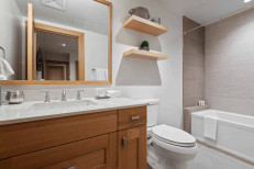 This brand new, fourth floor, residence is a short walk from The Westin Riverfront Express Gondola and offers a gas fireplace in the living room, a luxe kitchen with premium Bosch appliances, and dining niche and two guest suites, each with an attached bathroom, one has a king size bed, the other has two twin-over-twin bunk beds. Additional features include air conditioning, hardwood flooring, Sonos surround sound, a washer/dryer and underground parking for one vehicle. More...