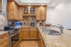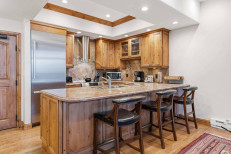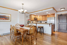 This striking, second floor ski-in/ski-out residence, steps from the Elkhorn Lift, offers a family room with a gas fireplace and sleeper sofa, a chef’s kitchen with stainless steel appliances and granite countertops, plus a custom dining banquette for six. Additional features include a primary suite with a king size bed and attached bathroom, a guest bedroom with a twin-over-queen bunk bed and queen trundle bed, hardwood flooring throughout, a stacked washer/dryer, and underground parking for one vehicle. More...