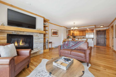 This delightful, second floor ski-in/ski-out retreat, steps from the Elkhorn Lift, offers a family room with a gas fireplace, a superior kitchen with stainless steel appliances and granite countertops, plus a dining table for six. Additional features include a primary suite with a king size bed, desk/work space, and attached bathroom with a soaker tub and double vanity, hardwood flooring throughout, custom lighting, stacked washer/dryer, and underground parking for one vehicle. More...