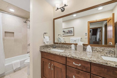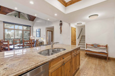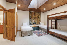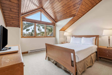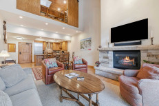 This two-level, southwestern-inspired, ski-in/ski-out retreat, steps from the Elkhorn Lift, offers a great room with a gas fireplace and flatscreen TV, a complete kitchen with stainless steel appliances, plus a dining table for six. Additional features include two guest suites, each with an attached bathroom (primary has a king size bed, secondary has two twin beds), a third bedroom and loft with two twin beds each, skylights, a stacked washer/dryer, and underground parking for one vehicle. More...