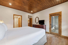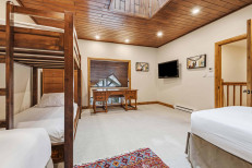 This charming, chalet-inspired ski-in/ski-out residence, steps from the Elkhorn Lift, offers a family room with a gas fireplace, flatscreen TV and sleeper sofa; a top-of-the-line kitchen with stainless steel appliances and a quartz, waterfall-edge island; plus a dining table for eight. Additional features include a primary suite with a king size bed, flatscreen TV and attached bathroom, a bunkroom with two sets of twin-over-twin beds, hardwood flooring and designer lighting throughout, a stacked washer/dryer, and underground parking for one vehicle. More...