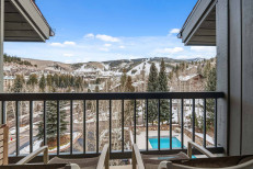 This second floor ski-in/ski-out retreat, steps from the Elkhorn Lift, offers a family room with a gas fireplace, sleeper sofa and desk/work space; a premium kitchen with stainless steel appliances and granite countertops; plus a dining table for six. Additional features include a primary suite with a king size bed and attached bathroom with soaker tub, hardwood flooring, a stacked washer/dryer, and underground parking for one vehicle. More...