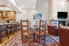 This mountain-elegant, ski-in/ski-out retreat is steps from the Elkhorn Lift and offers a family room with a gas fireplace and sleeper sofa, a chef’s kitchen with premium appliances and granite countertops, as well as a dining table for six. Additional features include a primary suite with a king size bed and attached bathroom, a guest bedroom with a double and twin bed and bathroom, ceiling fans, a stacked washer/dryer, and underground parking for one vehicle. More...