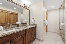 This splendid, ski-in/ski-out, corner unit penthouse, steps from the Elkhorn Lift, offers a great room with floor-to-ceilings windows, a gas fireplace and sleeper sofa; a premium kitchen with granite countertops; plus, a dining table for six. Additional features include three guest suites, each with an attached bathroom (primary has a king size bed, jetted soaking tub and double vanity, second suite has a king size bed, third suite has two sets of twin-over-twin bunk beds), heated granite flooring in the living areas and bathrooms, chandelier lighting, ceiling fans, washer/dryer closet, and underground parking for one vehicle. More...