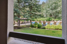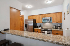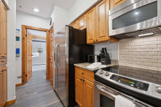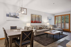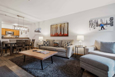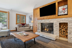 This mountain modern, second floor/ground level residence offers a wood burning fireplace and sleeper sofa in the family room, an upgraded chef’s kitchen, two guest suites, each with an attached bathroom, one with a king size bed and the other with a queen bed and twin-over-double bunk bed. Additional features include custom lighting, a washer/dryer, covered parking for one vehicle and access to a private ski locker room. More...