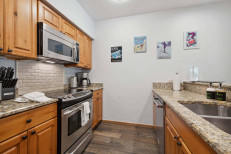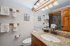 This Platinum, second floor/ground level residence offers a great room with a wood burning fireplace, tile flooring, a sleeper sofa, an upgraded chef’s kitchen, two guest suites, each with an attached bathroom, one with a king size bed and a queen sleeper sofa and the other with two queen size beds. Additional features include custom lighting, a washer/dryer, covered parking for one vehicle and access to a private ski locker room. More...