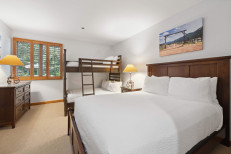This residence offers a great room with vaulted ceilings and a wood burning fireplace, a chef’s kitchen, two guest suites, each with an attached bathroom, one with a king size bed and the other with two double size beds. Additional features include a bonus, upstairs loft with two sets of twin-over-twin bunk beds, a washer/dryer, covered parking for one vehicle and access to a private ski locker room. More...