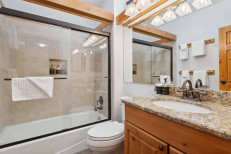 This Platinum, first floor residence offers a family room with a wood burning fireplace, upgraded A/V (Blu-Ray DVD, Bose Stereo with iPod capabilities) and sleeper sofa, a premium chef’s kitchen, two guest suites, each with an attached bathroom, one with a king bed, the other with two queen beds. Additional features include a washer/dryer, covered parking for one vehicle and access to a private ski locker room. More...