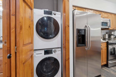 This delightful residence, reminiscent of a classic ski lodge, offers a family room with a wood burning fireplace and flatscreen TV, a gourmet kitchen with granite countertops and stainless steel appliances, plus a dining table for six. Additional features include two guest suites, each with an attached bathroom and flatscreen TV (primary has a king size bed and twin-over-twin bunk bed, secondary has two queen beds), a washer/dryer closet, covered parking for one vehicle, and access to a private ski locker room. More...