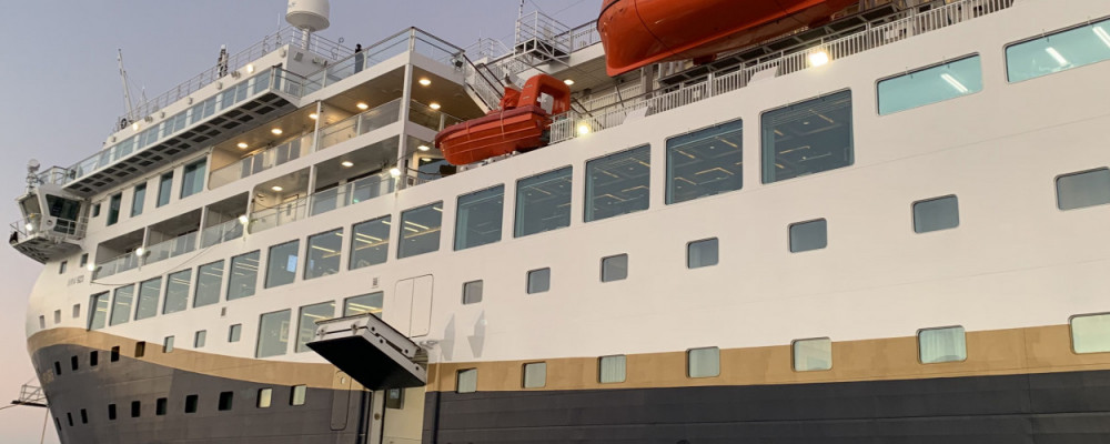 After which, I picked up my bag and walked the 100m to the centrally located cruise terminal where I joined my fellow passengers waiting for the ship to arrive which it duly did ontime and in a matter of minutes I was onboard and in my cabin with double bed, large porthole, desk (for working!) and a TV not to mention the heated floor in the bathroom!