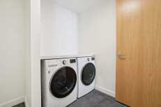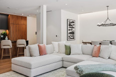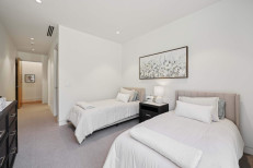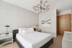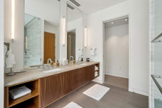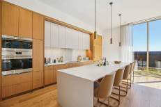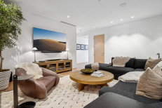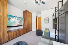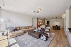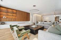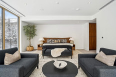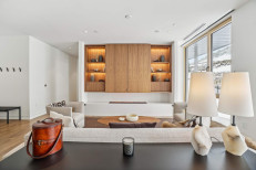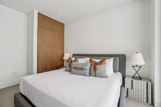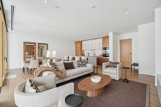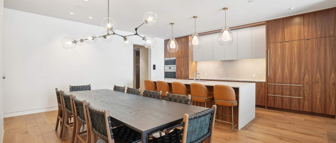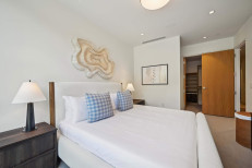 Experience the ultimate in luxury and convenience with this exceptional four-bedroom, five-bath residence, designed for both comfort and style. The open-concept living space enhances gatherings with a spacious oversized sectional, a dining table for twelve, and a stylish bar with seating for four. The beautifully designed kitchen, accented with warm wood tones, is fully equipped with a wine cooler, wet bar, and floor-to-ceiling windows that flood the space with natural light, creating an inviting atmosphere. More...