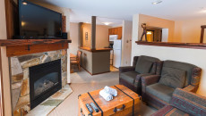 1 Bedroom suite has a queen bed and a pullout sofabed in living room. Full kitchen, natural gas fireplace, wifi and cable TV with DVD. This is a ski-in ski-out property. Bedding configuration varies in each units, please confirm with your booking agent.