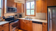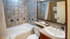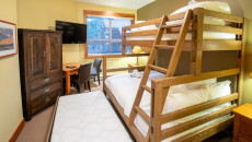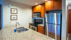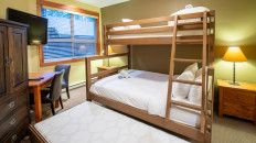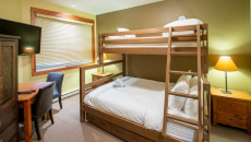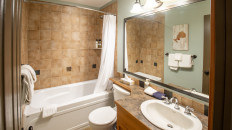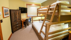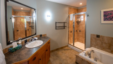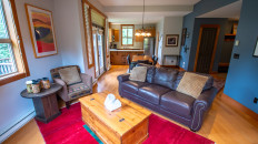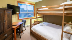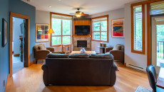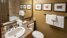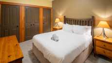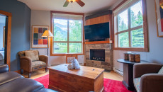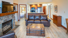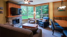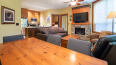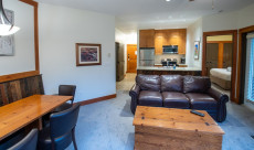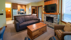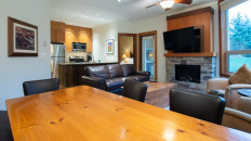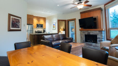 This 2-bedroom, 2-bathroom condo suite is located on the lower floor of Aspen Lodge at the Timberline Lodges complex at Fernie Alpine Resort. The suite includes a full kitchen, large living/dining area, flat screen TVs, gas fireplace, free Wi-Fi, DVD player and modern furnishings. There is a King bed in the master bedroom, 2 Queen beds in the second bedroom and a sofa pull-out in the living room – sleeping up to 7 guests. More...