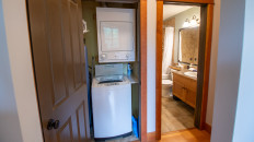 The large windows and vaulted ceilings in this top floor condo will welcome you as you enter, and make you feel at home in the mountains instantly. The condo features 2-bedrooms, 2-bathrooms, and a full kitchen with stainless steel appliances and granite countertops. There is cable TV, free Wi-Fi, an in-suite laundry, air-conditioning, ski storage and a private balcony from which you can enjoy the mountain views. Both bedrooms have a King bed and there is a sofa pull-out in the living area - sleeping up to 6 guests.
