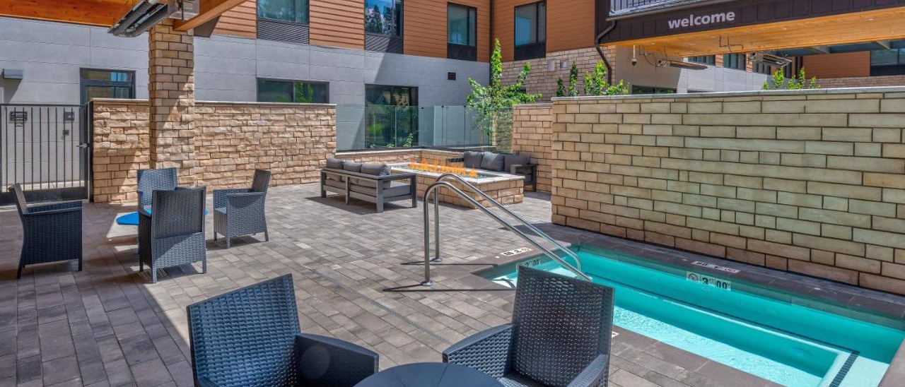 The property offers ski and bike storage with lockers at the hotel, plus a lobby bar, heated indoor pool, heated patio, hot tub, and fire pit.