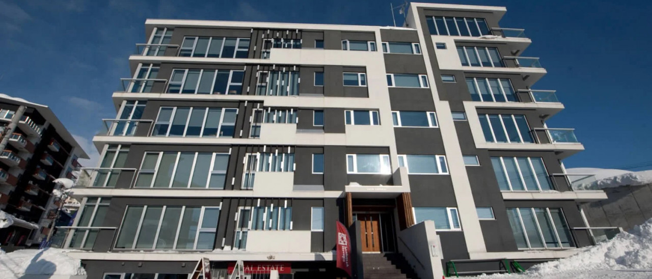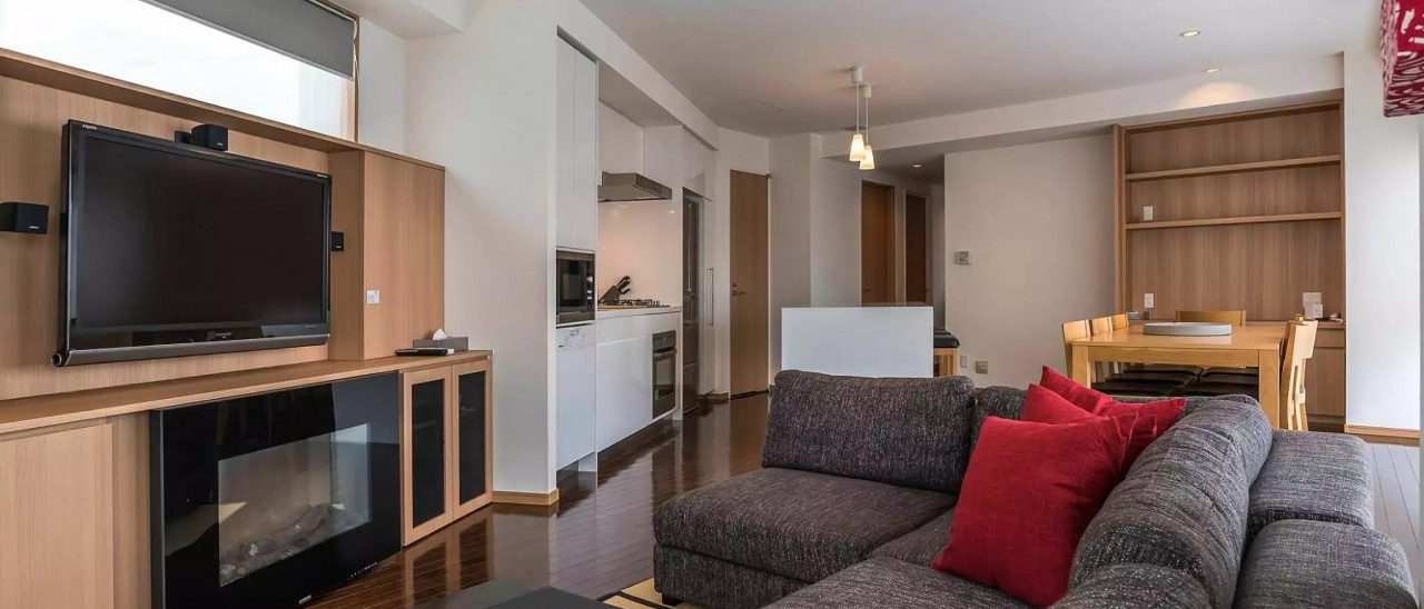 This aparthotel is ideal for families and groups. Choose from spacious 2- to 3-bedroom suites, each outfitted with sleek, contemporary touches and floor-to-ceiling windows framing Mount Yotei and whispering birch forests. Private balconies invite you to breathe in the crisp mountain air, while fully equipped kitchens and the in-room washer and dryer keep life effortlessly convenient.