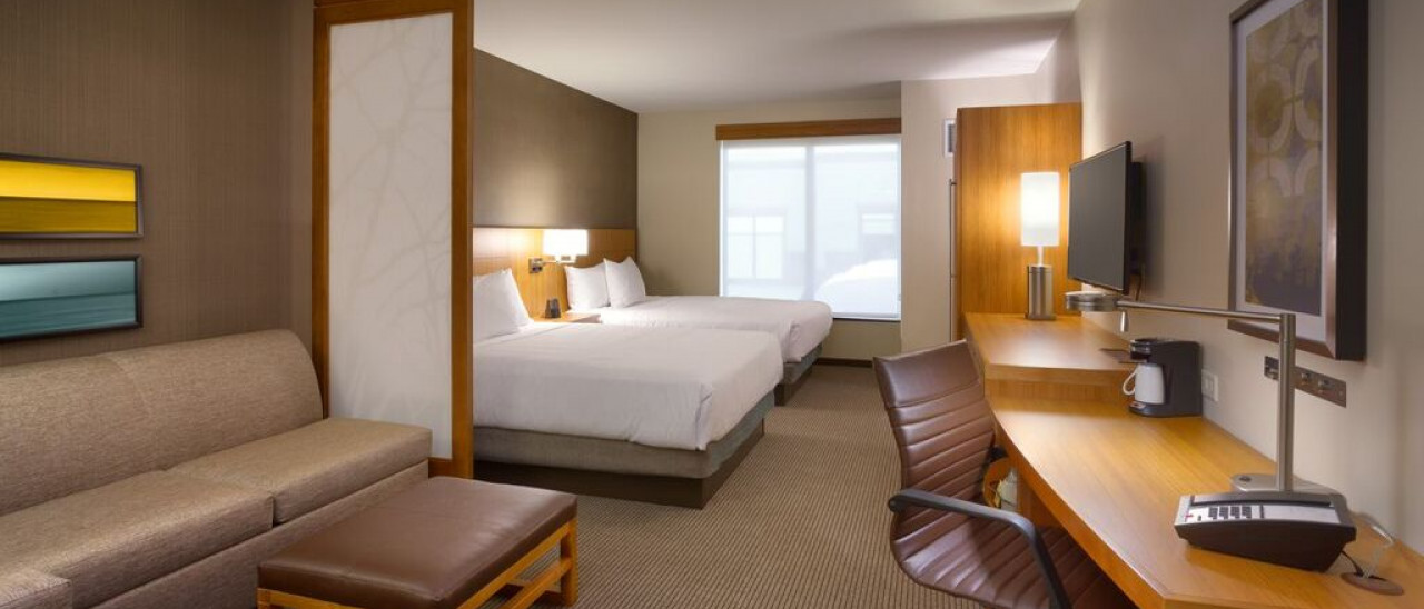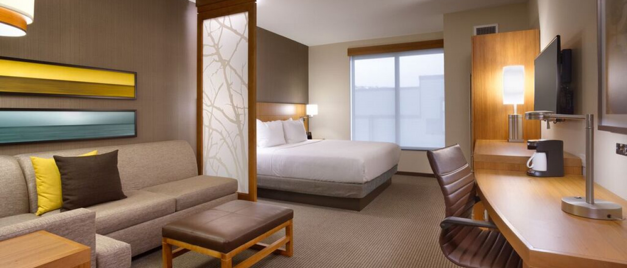 All of the spacious guestrooms feature plush Hyatt Grand Bed and state-of-the-art media and work centers. Choose from rooms with one king or two queen beds. You'll love the 42" HDTV, Cozy Corner with sofa or sofa-sleeper, and bathroom vanities with granite countertops and complimentary amenities. Get connected with free Wi-Fi and remote printing.