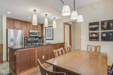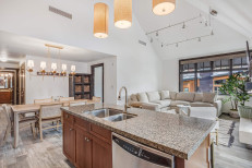 This unique, open concept, ski-in, ski-out residence is steps from Elk Camp Gondola and ski school and features western contemporary decor, a gas fireplace, full kitchen with electric range and bar seating for 3, a washer/dryer, private ski locker, and underground parking. More...