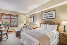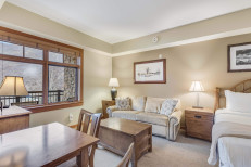This quiet, corner, ski-in, ski-out residence is steps from Elk Camp Gondola and features a refreshed interior and large, open living room with sleeper sectional, leather recliner and tufted stools, plus a modern queen sleeper daybed. This residence also offers a gas fireplace, washer/dryer, private ski locker, and underground parking. More...