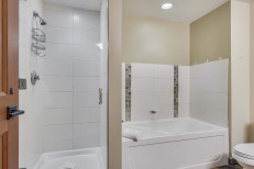 Unwind in this stunning mountain-modern residence, featuring vaulted ceilings, three spacious bedrooms, and three elegant bathrooms. After a day on the slopes, relax by the fireplace or lounge on the roomy sectional to enjoy a movie. The open-plan kitchen is perfect for gathering, with seating for four at the island and a dining table for six. Take in breathtaking views of the Skittles Chairlift on Fanny Hill from this prime location. Each suite offers a king-size bed and ensuite bathroom, with the primary featuring a private deck, workstation, and a spa-like soaking tub and shower. The secondary bedroom includes a shower/tub combo, while the third can serve as a private lock-off suite with its own deck, mini-fridge, and microwave. Additional perks include air conditioning, a double sleeper sofa, washer/dryer, and a convenient ski locker.?? More...