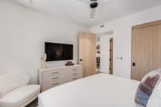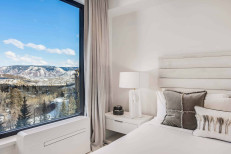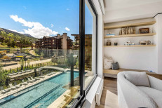 Enjoy stunning panoramic views of Snowmass Mountain from this 5th-floor unit, where Scandinavian-inspired interiors set a serene tone. The sleek Opti-Myst fireplace and epicurean kitchen, featuring upscale Bosch stainless steel appliances and a wine refrigerator, create a sophisticated living space. An operable door in the living room seamlessly connects the indoors with the natural beauty outside. The residence includes a primary suite with a king-sized bed and a luxurious Waterworks bathroom, as well as a secondary suite with two twin beds. Thoughtful touches like ceiling fans, air conditioning, and a washer/dryer closet complete this luxurious, sustainable living experience. More...