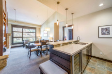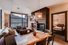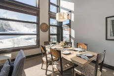 This chic, modern, top-floor, ski-in/ski-out residence is located in the same building as the Treehouse Adventure Center and Ski School and features pitched ceilings, floor-to-ceiling windows, custom lighting and a gas fireplace. This residence also offers a chef’s kitchen with marble countertops, gas range, wine refrigerator, breakfast bar for 3, an ultra-luxe mater suite with sitting area, exceptional closet, a jetted bath tub, washer/dryer, private ski locker, and underground parking. More...