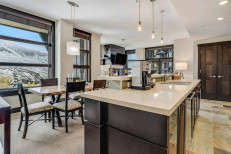 This refined, top floor, exceptionally spacious, ski-in, ski-out residence is steps from Village Express and in the same building as the Treehouse Adventure Center and Ski School, and features a light and bright great room with expansive windows, vaulted ceilings and a gas fireplace. This residence offers a chef’s kitchen with marble countertops, gas range, wine refrigerator, breakfast bar for 3, a lavish master bathroom with a jetted tub and dual sinks, a washer/dryer, private ski locker, and underground parking. More...