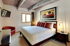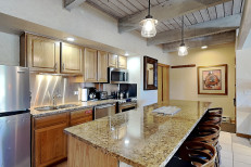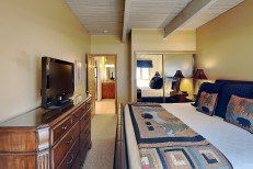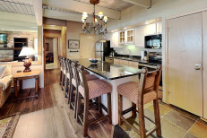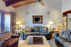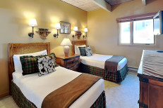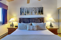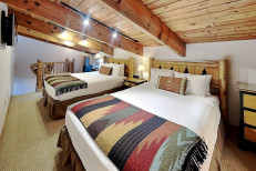 The two bedroom plus loft / two bathroom is 1,285 square feet. Guests enjoy a spacious living room with gas fireplace and full kitchen. The master bedroom and second bedroom are located downstairs. The two bathrooms are also located downstairs. The master bedroom features a king bed. In this condo, the second bedroom features two twin beds and loft bedding features four twin beds. No smoking and no pets. The Timberline has an outdoor heated swimming pool, 2 hot tubs, sauna, locker rooms and guest laundry. Restaurant on site for dinner except during the off seasons.