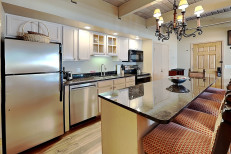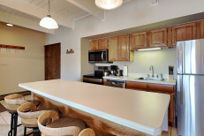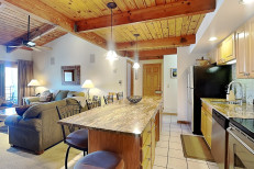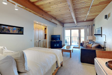 This studio loft condominium is approximately 644 square feet. There is a living room with a gas fireplace and Human Touch Massage Chair, full kitchen and loft bedroom upstairs. There is a king bed in the loft and a bunk bed in the living room. Located on the 3rd floor. Has a balcony. Walking distance to the ski slope. The condo can accommodate up to four people. Please be advised that pets or smoking are not allowed.