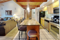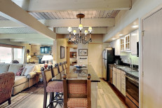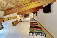 The two bedroom plus loft / three bath is approximately 1,400 square feet. There is a spacious living room with gas fireplace and fully equipped kitchen. The master bedroom features a king bed, the second bedroom features a queen size bed, and the loft bedding features four twin beds. No smoking and no pets. The Timberline has an outdoor heated swimming pool, 2 hot tubs, sauna, locker rooms, and guest laundry. Restaurant on site for dinner except during the off seasons. Parking across the property for a fee during the winter.