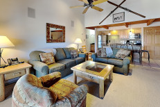 The two bedroom plus loft / two bathroom is 1,285 square feet. Guests enjoy a spacious living room with gas fireplace and full kitchen. The master bedroom and second bedroom are located downstairs. The two bathrooms are also located downstairs. The master bedroom features a king bed. Second bedroom features a queen bed and loft bedding features three twin beds. No smoking and no pets. The Timberline has an outdoor heated swimming pool, 2 hot tubs, sauna, locker rooms and guest laundry. Restaurant on site for dinner except during the off seasons.