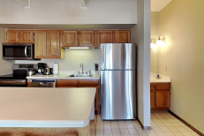 The two bedroom / two bath condominium is approximately 965 square feet. There is a spacious living room with gas fireplace, fully equipped kitchen and table for 4 people. The master bedroom features a king bed with en-suite bathroom. The second bedroom features two twin beds. First floor entrance. Patio. Non-smoking and no pets. The Timberline has an outdoor heated swimming pool, 2 hot tubs, sauna, locker rooms and guest laundry. Restaurant on site for dinner except during the off seasons.