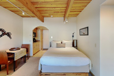 The two bedroom / two bath condominium is approximately 965 square feet. There is a spacious living room with gas fireplace and fully equipped kitchen. The master bedroom features a king bed with en-suite bathroom. In this condo, the second bedroom features a queen bed. No smoking and no pets. The Timberline has an outdoor heated swimming pool, 2 hot tubs, sauna, locker rooms and guest laundry. Restaurant on site for dinner except during the off seasons.