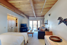 The one bedrooms plus loft, approximately 830 square feet. There is a spacious living room and a fully equipped kitchen. Bedding in the master bedroom is a king. Bedding in the loft is 2 double beds. There are 2 full bathrooms. Non-smoking and no pets. The Timberline has an outdoor heated swimming pool, 2 hot tubs, sauna, locker rooms and guest laundry. Restaurant on site for dinner except during the off seasons.