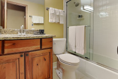 The two bedroom / two bath condominium is approximately 965 square feet. There is a spacious living room with gas fireplace and fully equipped kitchen. The master bedroom features a king or queen bed with en-suite bathroom, this master bath has a steam shower feature. The second bedroom features two twin beds or a full size bed. No smoking and no pets. The Timberline has an outdoor heated swimming pool, 2 hot tubs, sauna, locker rooms and guest laundry. Restaurant on site for dinner except during the off seasons.