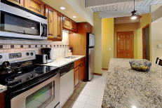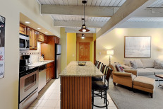 The two bedroom / two bath condominium is approximately 965 square feet. There is a spacious living room with gas fireplace and fully equipped kitchen. The master bedroom features a king bed with en-suite bathroom. In this condo, the second bedroom features a king bed. No smoking and no pets. The Timberline has an outdoor heated swimming pool, 2 hot tubs, sauna, locker rooms and guest laundry. Restaurant on site for dinner except during the off seasons.