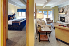 The two bedroom / two bath condominium is approximately 965 square feet. There is a spacious living room with a sofa bed, gas fireplace and fully equipped kitchen. The master bedroom features a king bed with en-suite bathroom. The second bedroom features two twin beds (converts into one big bed). No smoking and no pets. The Timberline has an outdoor heated swimming pool, 2 hot tubs, sauna, locker rooms and guest laundry. Restaurant on site for dinner except during the off seasons.