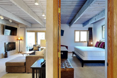 The studio loft is approximately 500 square feet. There is a living room with gas fireplace, full kitchen (no oven) and the loft bedroom is located upstairs. There is a queen bed in the loft and additional bedding in the living room. Condo is located on the 3rd floor. Has a balcony. Walking distance to the ski slope. The studio loft can accommodate up to four people. We have an out door heated swimming pool, 2 hot tubs, sauna, locker rooms, fitness center and guest laundry. Restaurant on site for dinner except during off season. Please be advised that we do not allow pets or smoking.