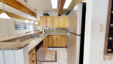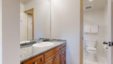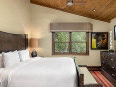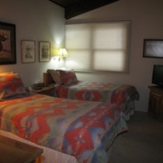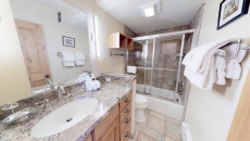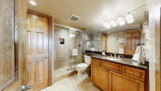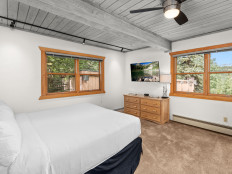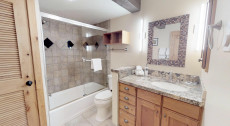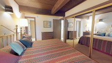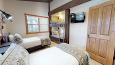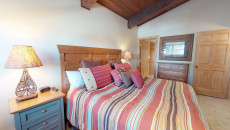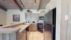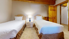 Top of the Village Trails 205, located on the second floor, offers 1,080 square feet of comfortable living space with a Southwest-inspired décor. The master bedroom features a king bed and a private bathroom, while the guest bedroom includes two twin beds and built-in twin bunk beds. The living room provides additional sleeping with a sofa bed and features a wood-burning fireplace. The fully equipped kitchen includes all the essentials, and the residence has a private deck with a gas grill. Additional amenities include a washer and dryer. More...