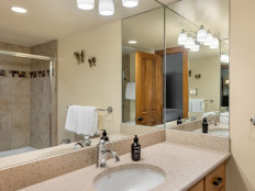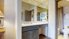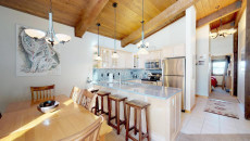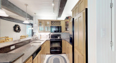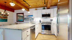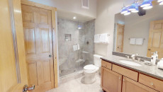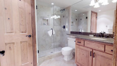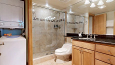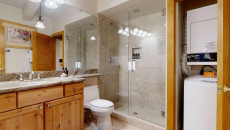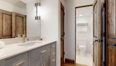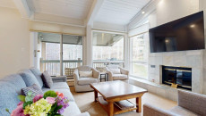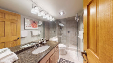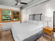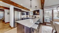 Top of the Village Summit 209, located on the second floor, offers 1,800 square feet of bright and airy living space with stunning views of the surrounding forest and nearby ski slopes. The spacious living room features pine beams, light grey tones, and a mountain stone gas fireplace as its centerpiece. This modern condominium includes four bedrooms and four bathrooms, making it ideal for large families or groups. The master bedroom has a king bed, walk-in closet, and private bathroom, while the two additional bedrooms each have two twin beds and private bathrooms. The fourth bedroom also has a king bed and a nearby hallway bathroom. The fully equipped kitchen includes granite countertops, and the residence has a private deck with a gas grill. Additional amenities include a washer and dryer. More...