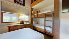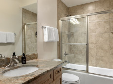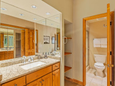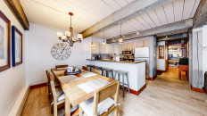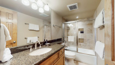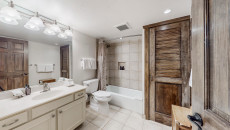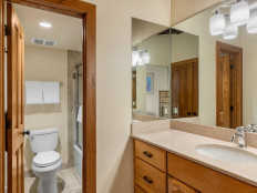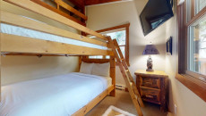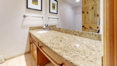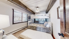 Top of the Village Trails 101, located on the 1st floor, offers 1,450 square feet of cozy mountain cabin comfort with ski-in access right to your deck. The living room, featuring a brick gas fireplace, is perfect for relaxing after a day on the slopes. The kitchen, with a granite island, is ideal for gathering while dinner is prepared. This three-bedroom, three-bathroom condominium includes a master bedroom with a king bed and private bathroom, a second bedroom with two twin beds that can be converted to a king and a private bathroom, and a third bedroom with two twin beds (which can be converted to a king) plus built-in bunk beds and a hallway bathroom. The living room has a sofa bed and a private deck with a gas grill. More...